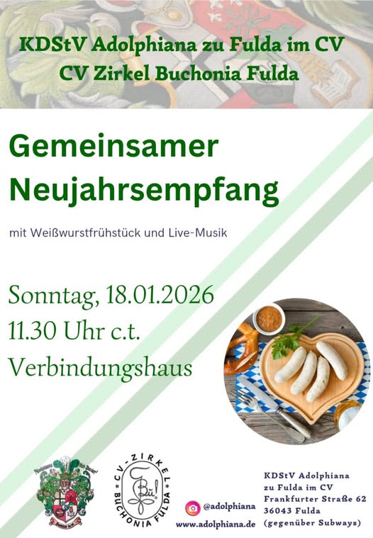 Am 14.01.2025 findet der Stammtisch auf dem Haus der KDStV Adolphiana